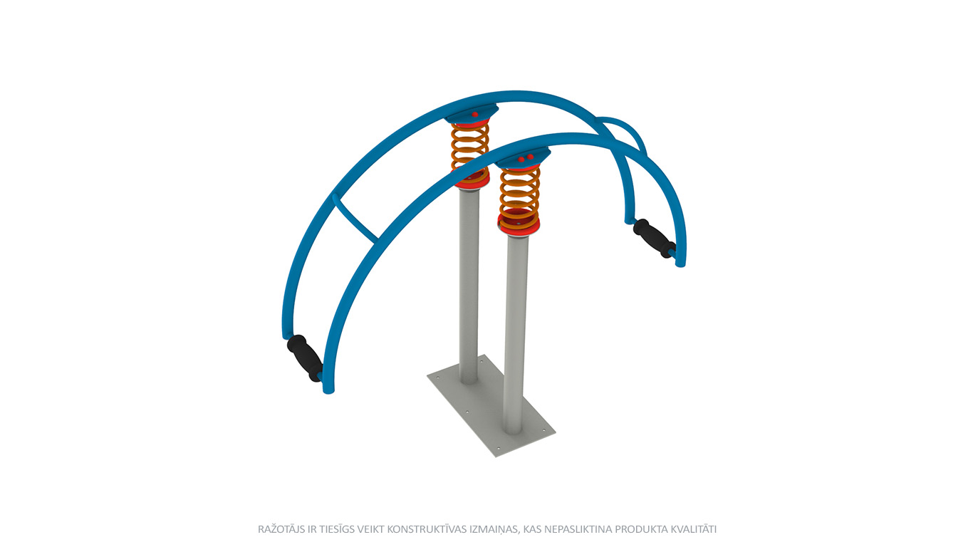 Iekārta paredzēta 2 bērniem vecumā no 3 līdz 12 gadiem. Visa konstrukcija no metāla.