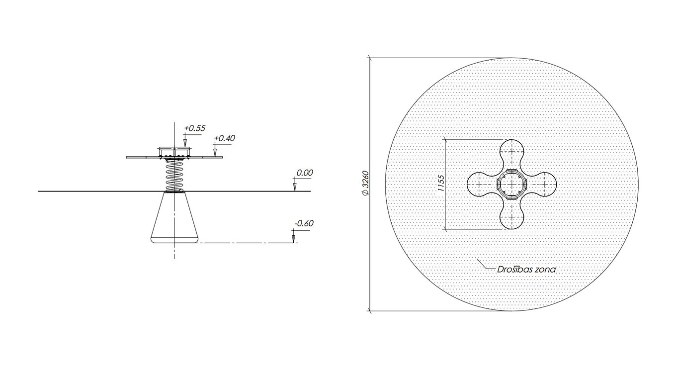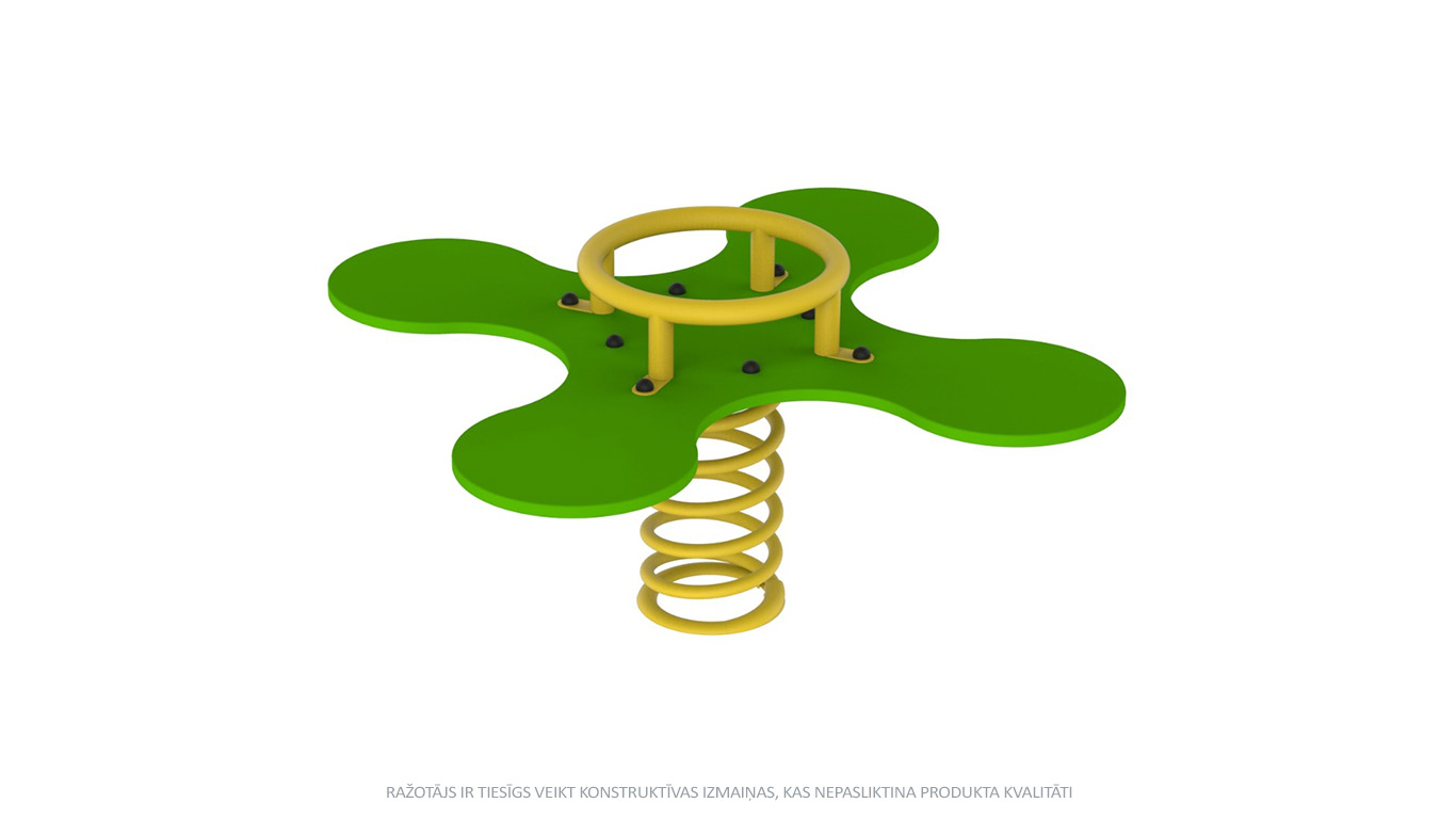 Iekārta paredzēta vienlaicīgai lietošanai 4 bērniem, vecumā no 2 līdz 7 gadiem. Karkass puķītes formā. Pamatnē cinkota atspere ar betonēšanas enkuru.