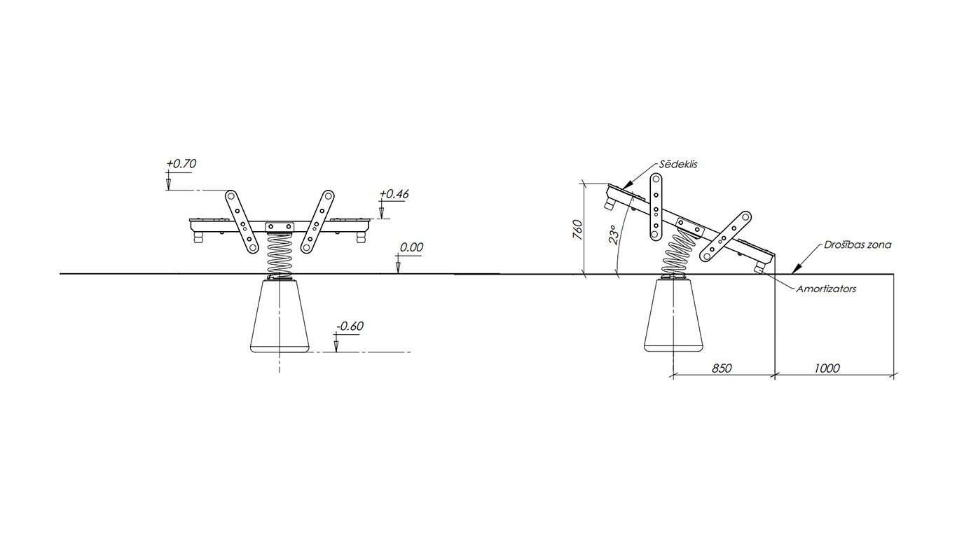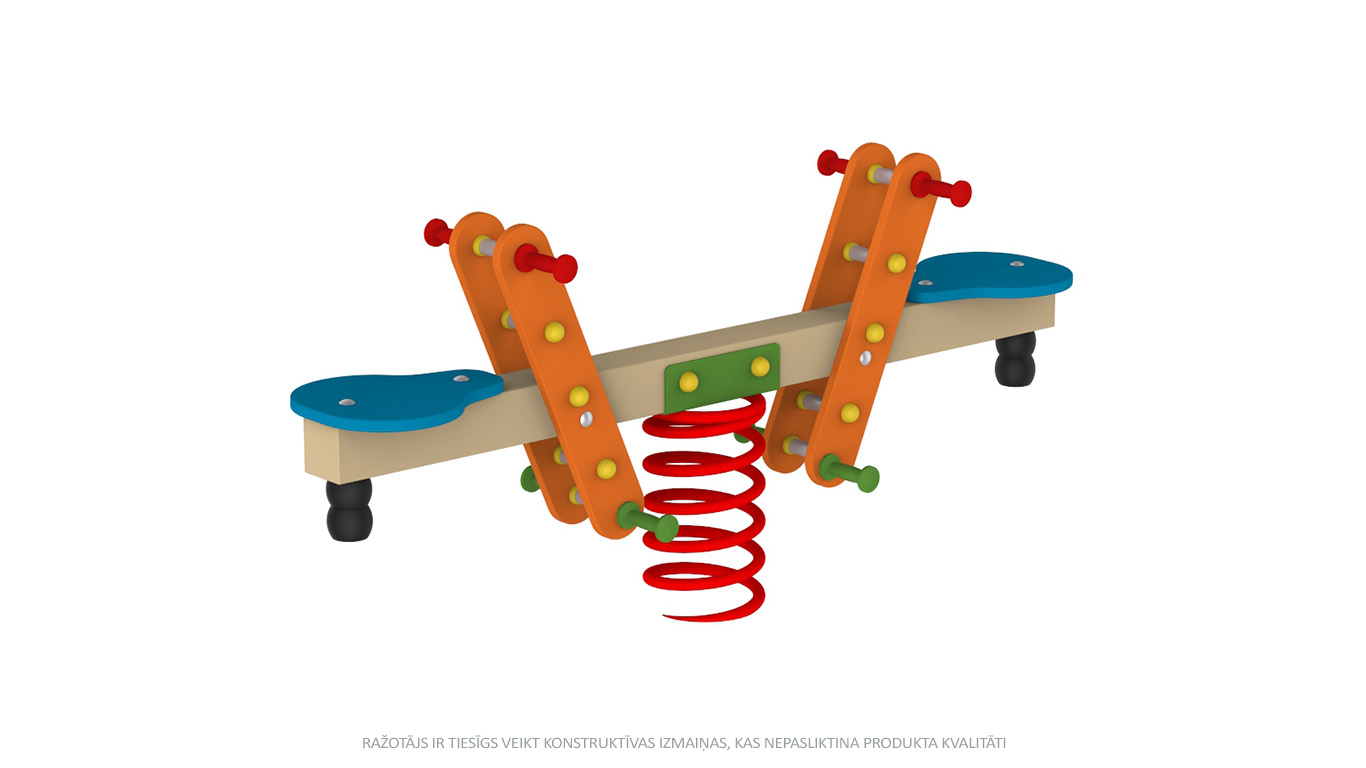 Iekārta paredzēta 2 bērniem vecumā no 2 līdz 7 gadiem. Pamatnē cinkota atspere ar betonējamo enkuru.
